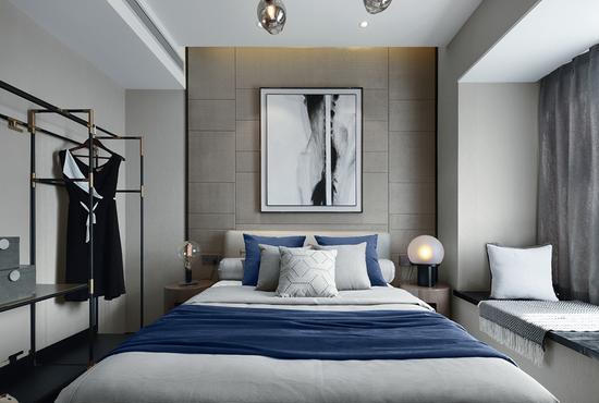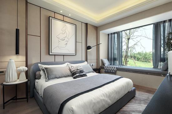 臥室的布置,干凈利落,線條簡約的裝飾畫和飾品,有著雅痞紳士的克制,色調(diào)沉穩(wěn)的讓人安心,而床的那份直接的親和舒適感讓人忍不住要跟它親密接觸。