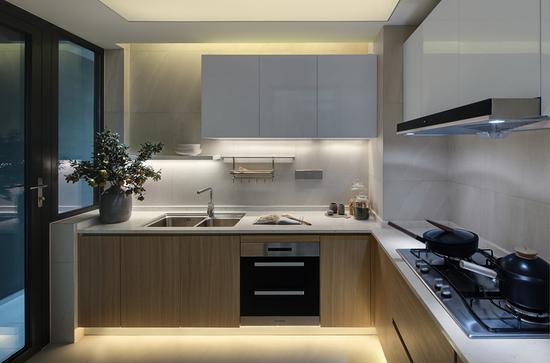 開放的廚房運用了全黑的色調(diào),冷酷而嚴謹,當五顏六色的食物被生產(chǎn)出來,擺滿臺面,那人間的“煙火”才跳脫出來,構(gòu)成強烈的畫面感。