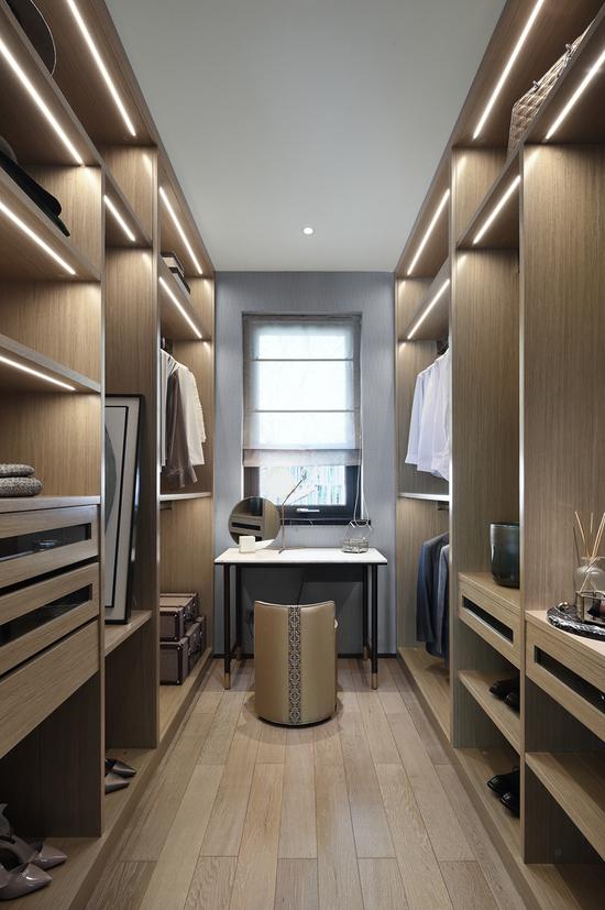 都說衣帽間有穿越的法門,原木色的格子聚攏排列,每間格子都有著自己的責任,所以衣帽間的氣場多少有些神秘,當你從這里離開時,首先穿越了自己。