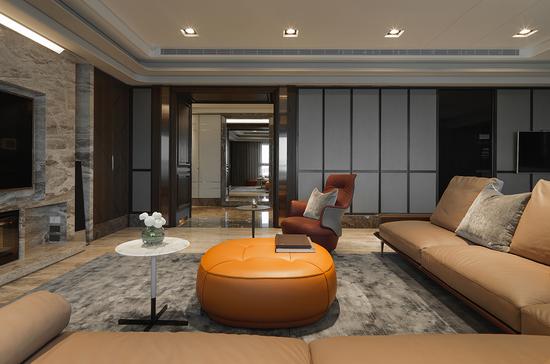 雖然項(xiàng)目的主要使用者只有男女主人,但由于客戶父母及親戚的日常到訪,設(shè)計(jì)師試圖將起居室打造成不同于會(huì)客廳的,更為輕松舒適的空間模式。