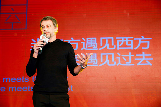 時(shí)空,'時(shí)'代表時(shí)間,就是從過去到現(xiàn)在;'空'是指地域,比如從意大利連接到中國,這是一個(gè)空間地域的問題。他做了很多的研究和實(shí)地考察,從過去中國幾千年的歷史文化中,找到紋樣、圖案這些過去的元素作為設(shè)計(jì)中重要概念。他所有的產(chǎn)品會(huì)連接到過去和未來,涉及到西方和東方的結(jié)合。以過去和現(xiàn)在,東方和西方作為坐標(biāo)軸,所有的設(shè)計(jì)圍繞在這個(gè)坐標(biāo)軸的重點(diǎn)上。"