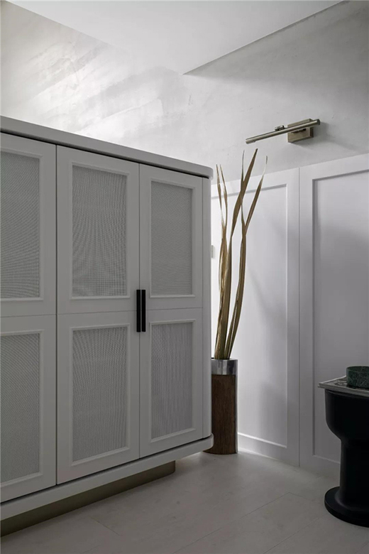 白色護(hù)墻板,米色系沙發(fā)及地毯,