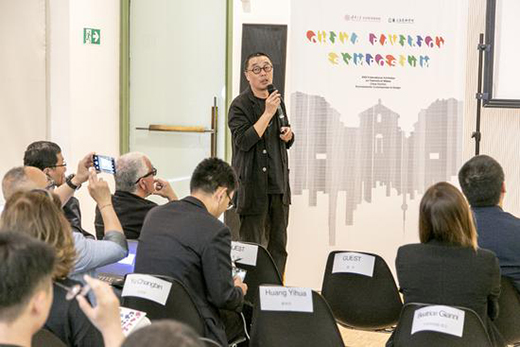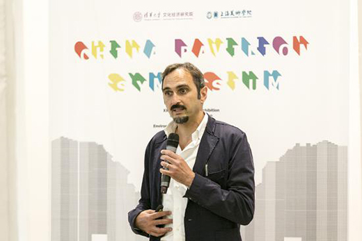 活動當(dāng)天的主題演講環(huán)節(jié)由清華大學(xué)蘇丹教授擔(dān)任學(xué)術(shù)主持,清華大學(xué)美術(shù)學(xué)院馬泉教授,美國波士頓東北大學(xué)保羅·蘇卡來利教授(Paolo Ciuccarelli),都靈理工大學(xué)建筑與設(shè)計系博明凱副教授(Michele Bonino),上海美術(shù)學(xué)院王海松教授,上海美術(shù)學(xué)院設(shè)計系副主任程雪松教授,意大利著名建筑事務(wù)所Fuksas Studio建筑師貝亞特麗斯·賈尼女士(Beatrice Gianni),慕尼黑工業(yè)大學(xué)顧琰博士分別發(fā)表了主題演講。隨后的圓桌討論環(huán)節(jié)中,在南京藝術(shù)學(xué)院李立新教授和蘇丹教授的主持下,上述主講嘉賓與上海美術(shù)學(xué)院汪寧副教授、黃祎華講師和意大利FM當(dāng)代藝術(shù)中心藝術(shù)總監(jiān)、米蘭新美術(shù)學(xué)院視覺藝術(shù)與策展專業(yè)主任馬可·斯科蒂尼教授(Marco Scotini)、設(shè)計師俞昌斌先生共同參與了2個話題的討論。
