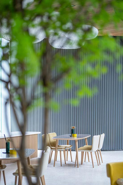設(shè)計圍繞自然與空間的界限關(guān)系展開,以靈動的美學(xué)語素,營造弧形或圓形的圍合布局,在流暢的線條感、藝術(shù)的秩序感中,對照大幅落地玻璃與戶外綠意,再添三分光影,讓人更得閑適放松之感。