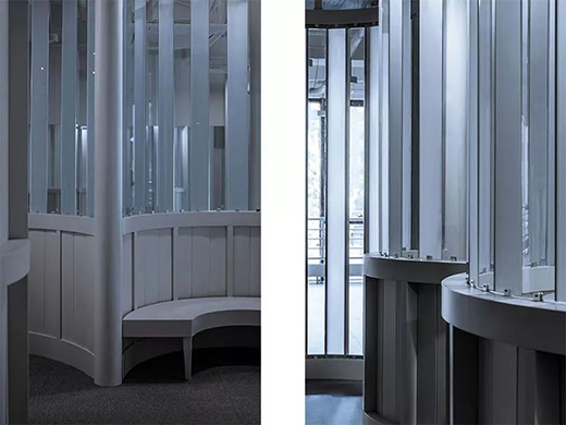 這個(gè)項(xiàng)目不僅是一個(gè)室內(nèi)項(xiàng)目,本質(zhì)上是視線互相穿梭的三維室內(nèi)裝置。它也不僅是視覺對(duì)象,更是個(gè)適合人們進(jìn)入的溫柔圓形容器,使用者常形象地稱這里的圓形空間為“大花瓶”。人們進(jìn)入其中,他們從內(nèi)部而不僅是從外觀上理解它。