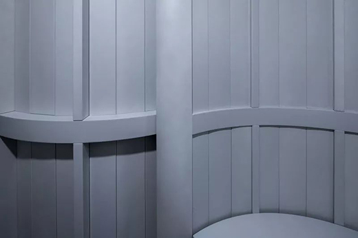 “器屋/ Vase House”是一個(gè)舞蹈教室,我們希望這里是教學(xué)、練習(xí)舞蹈的地方,也是每個(gè)人通過身體使用、體驗(yàn)、參與其中的室內(nèi)“構(gòu)筑物”。這里鼓勵(lì)人們通過身體體驗(yàn),所以它被設(shè)計(jì)的非常的柔軟,它面積不大,圓形始終貫徹在整體設(shè)計(jì)的邏輯中,并通過這個(gè)基礎(chǔ)形狀的組合,自然而然地衍生出不同功能的房間,如門廳、更衣室、練習(xí)室、教室、走廊等等。為了不浪費(fèi)面積,走廊與休息間合并互相兼顧使用,它還有一個(gè)更為重要的功能,即模仿古典劇院中的貴賓包房,有座椅,有矮扶墻,有看窗。多個(gè)半圓形在平面上串聯(lián)而成的包間式走廊,便于“看客”坐在其中休息、等待、同時(shí)觀看舞蹈室里面的“表演”。