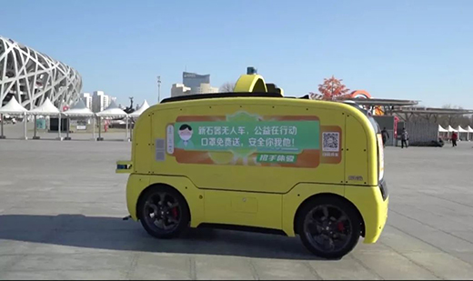 此前,醫(yī)療保障物資短缺也是大眾關(guān)注熱點(diǎn)。其中口罩的需求量與市場供給量形成明顯感受的巨大缺口,一度到了一罩難求的地步。于是,獲獎產(chǎn)品新石器無人車秒變“哆啦A夢百寶袋”。工作人員在各處運(yùn)營的無人車中放置口罩,聯(lián)動全國多個(gè)運(yùn)營場地進(jìn)行派發(fā),供市民們免費(fèi)領(lǐng)取。