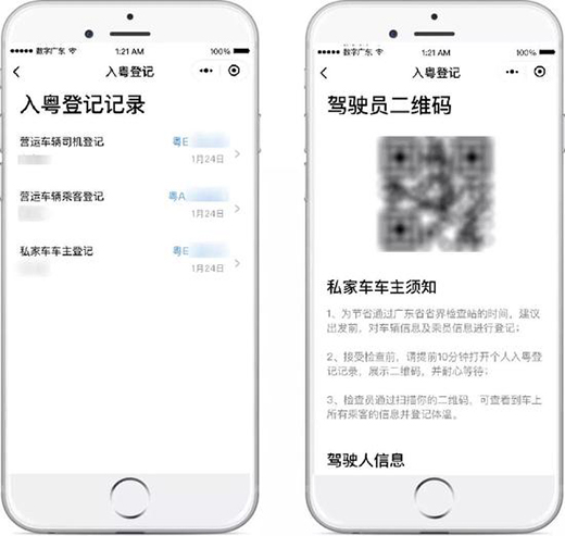 針對復(fù)工返程高峰,進(jìn)入廣東車輛可通過“入粵登記”功能一鍵辦理信息登記。車主憑借生成的專用“二維碼”,快速掃碼完成各大檢疫站臨檢,大大降低了基層一線檢疫人員的工作強(qiáng)度,檢疫站也可根據(jù)登記信息預(yù)測來車人員,合理安排檢疫人員,為高效做好疫情防控工作提供有力的保障。