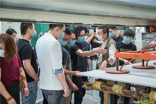 活動期間,設(shè)計師們參觀了石英質(zhì)玉石板的生產(chǎn)過程和板材應用展示中心。看到赫峰石英質(zhì)玉石板可以被應用在廚房臺面、家具臺面、家居裝飾墻面、地面等多個裝飾面材領(lǐng)域,都認為不虛此行,石英質(zhì)玉石花色和廣泛的應用范圍打開了創(chuàng)作想象的空間。