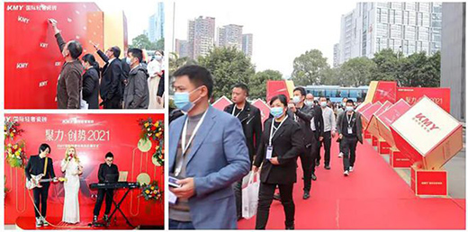 KMY品牌2021全矩陣新品吸睛亮相,新概念、新花色、新工藝和新空間展示設(shè)計方式悉數(shù)呈現(xiàn),獲得現(xiàn)場KMY經(jīng)銷商的大加贊賞。
