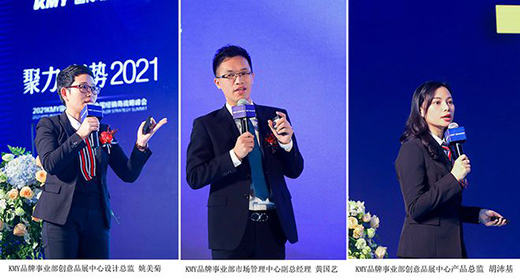 隨后,KMY品牌事業(yè)部市場管理中心副總經(jīng)理 黃國藝、KMY品牌事業(yè)部創(chuàng)意品展中心設(shè)計總監(jiān) 姚美菊 、產(chǎn)品總監(jiān) 胡沛基,分別從終端賦能規(guī)劃、產(chǎn)品規(guī)劃和展示設(shè)計三個方面分享演講,通過激活終端、強化體驗、打造差異化產(chǎn)品來提升品牌影響力和競爭力。