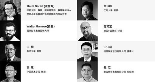 本屆大賽由德稻大師、教授,國際建筑師、教育家和詩人,世界上最長最高的張家界玻璃大橋設(shè)計者Haim Dotan(渡堂海)先生;國際知名家具設(shè)計大師Walter Barroso(白淼)先生;浙江大學(xué)教授,王健先生;中國美術(shù)學(xué)院藝術(shù)設(shè)計學(xué)院教授,雷達先生;江南大學(xué)設(shè)計學(xué)院教授,胡偉峰先生;德國IF設(shè)計獎評委晉常寶先生;恒林家居股份有限公司董事長,王江林先生;安吉偉譽家具有限公司總經(jīng)理,杜匯先生擔(dān)任專家評委。他們從座椅的“造型”、“功能”、“市場價值”等角度給予選手專業(yè)的點評。