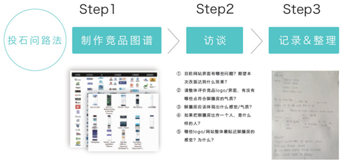 我們具體是怎樣做的呢?當然不是直接問老板要怎樣設計啦,而是采用一種”預訪談“的形式,我給它起了個名字叫”投石問路“法。