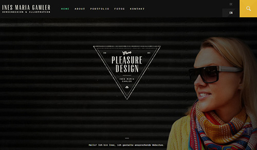 Ines Maria Gamler網(wǎng)站中展示的女性正側(cè)著臉,雙眼注視網(wǎng)站中間的文字。打開網(wǎng)站時(shí),大多數(shù)人會(huì)首先關(guān)注人物的臉部,并進(jìn)一步受到人物視線的引導(dǎo)。