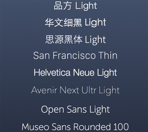 現代字體都有多種字重設置:Regular,Light,Thin和Ultralight
