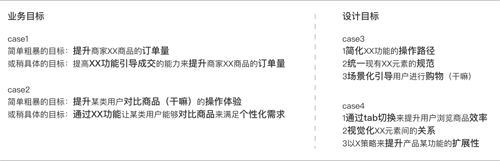 案例中的設(shè)計目標(biāo)其實結(jié)構(gòu)和業(yè)務(wù)目標(biāo)基本一致,由于自己的實踐經(jīng)驗以及能找到的分析案例有限,所以只說個人的理解:設(shè)計目標(biāo)是相對業(yè)務(wù)目標(biāo)更加具體化的策略和實現(xiàn)方式。其描述方式同樣可以使用上面總結(jié)出來的套路,例如: