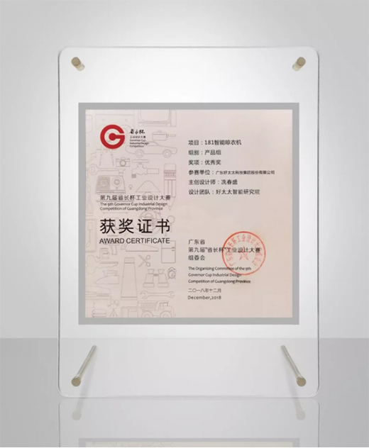 由廣東省人民政府工業(yè)和信息化廳主辦,廣東省工業(yè)設計協(xié)會承辦的第九屆“省長杯”工業(yè)設計大賽經(jīng)過約4個月的賽程已經(jīng)結(jié)束。本屆“省長杯”在全省21個地市,15個分賽區(qū)充分發(fā)動,從破紀錄的32051件參賽作品中,選出513件決賽作品,并最終決出30件獲獎作品和30個單項獎。其中,好太太智尊系列GW-181憑借創(chuàng)新的產(chǎn)品工業(yè)設計脫穎而出,榮獲“省長杯”工業(yè)設計大賽獎。