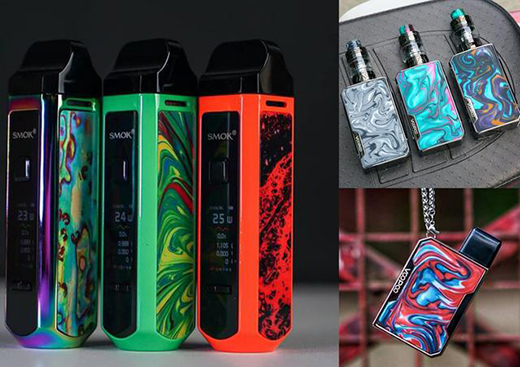 不同顏色的樹脂(環(huán)氧樹脂)混合之后會產(chǎn)生抽象的紋理效果,柔和且有動(dòng)感,屬于比較時(shí)尚的裝飾性材料,在弧面上制作成本高并且實(shí)現(xiàn)性低,設(shè)計(jì)前應(yīng)避開弧面上的使用。