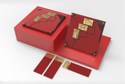 設(shè)計(jì)理念:本套“紅行滬上”系列紀(jì)念門(mén)票選擇了魯迅故居、中共一大會(huì)址和四行倉(cāng)庫(kù)遺址三處有代表性的紅色文化景區(qū),將景區(qū)門(mén)票與紀(jì)念幣相結(jié)合。這不僅賦予文創(chuàng)紀(jì)念品一定的使用價(jià)值,還具有很高的收藏價(jià)值。同系列的收納展示版造型由上海地圖抽象而來(lái),收納紀(jì)念門(mén)票的位置對(duì)應(yīng)了相應(yīng)景點(diǎn)的地理位置。這種新奇的方式讓游客更愿意去參觀紅色文化景點(diǎn),對(duì)了解到的紅色文化的印象更加深刻,同時(shí)也讓游客更愿意與他人分享這段有趣的經(jīng)歷,促進(jìn)人們交流學(xué)習(xí),傳播了紅色思想文化,更拉近的人與人之間的距離。