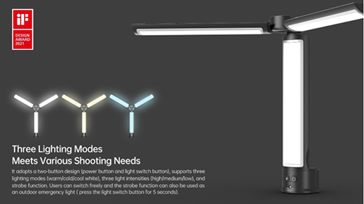 陳家勝同學(xué)設(shè)計的便攜式輔光燈是一款專為直播、拍攝等場景設(shè)計的一體化補光燈,采用三塊燈板。用戶可以自由調(diào)整角度,單手使用,還可以配合自拍桿、三腳架等設(shè)備使用。該產(chǎn)品已與合作公司進行實物打樣,等待投入量產(chǎn)。