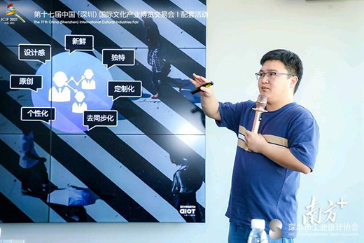 先鋒新銳設計師代表、深圳市佳簡幾何工業(yè)設計有限公司創(chuàng)始人張九州介紹了《新消費時代的設計變革》,在Z世代成為消費增長的主力軍,消費方式和消費內容已發(fā)生巨大革新的背景下,讓品牌切入年輕市場,滿足年輕人群的生活形態(tài),他表示這也是設計價值的最大體現(xiàn)。