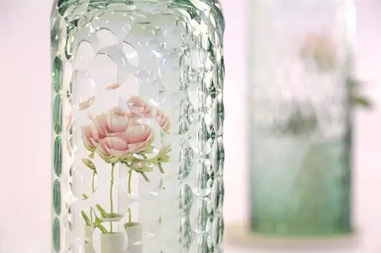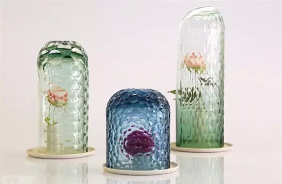 OP-vase 是由土耳其設(shè)計(jì)師 Bilge Nur Saltik 構(gòu)思創(chuàng)建的一系列花瓶,通過視覺扭曲、萬花筒原理,設(shè)計(jì)師使一朵花仿佛幻化出萬千抽象花朵,遍布花瓶瓶罩上的整個(gè)球面空間。當(dāng)觀察者轉(zhuǎn)動并改變角度時(shí),玻璃罩上的鮮花也隨之變化形式,萬千歸一、一化萬千。