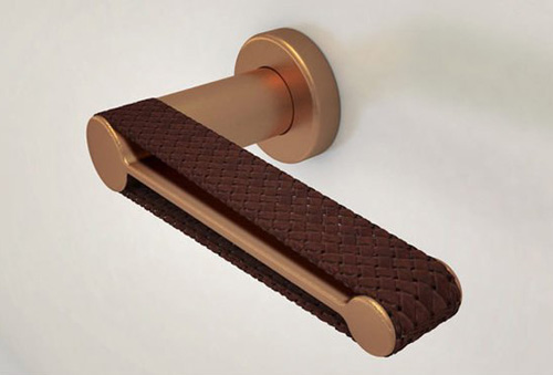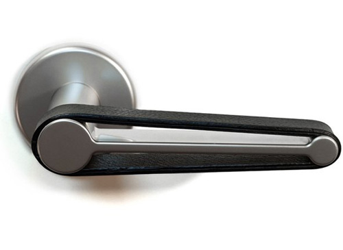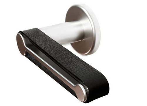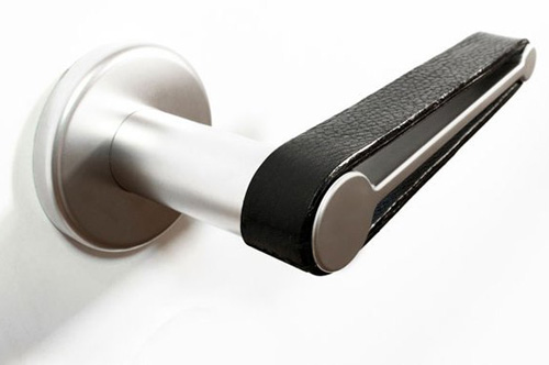 不銹鋼+皮革的緩沖門把手設計