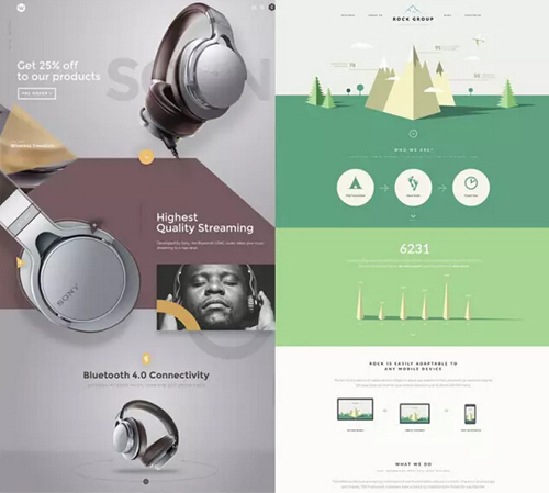 右圖2:整體頁面非常多的留白,除了一些扁平的設(shè)計元素外,主畫面以外多是以“白”的形式出現(xiàn)的。