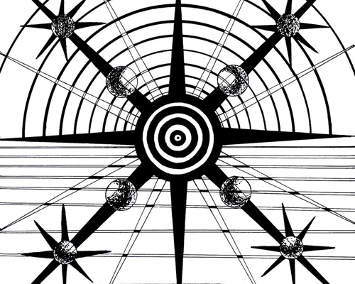 點(diǎn)的線化是以點(diǎn)形態(tài)在緊密有序的狀態(tài)下朝著相反方向延伸而成,而點(diǎn)的面化則是由一個(gè)點(diǎn)由中心向四周擴(kuò)張和反復(fù)衍生所得的結(jié)果。這個(gè)點(diǎn)經(jīng)過(guò)面化之后,它自身的造型意義也隨之隱含于面的轉(zhuǎn)化中。而原來(lái)單個(gè)的點(diǎn)的意義在這些線化和面化的形態(tài)中其原義也許早已不再,而表現(xiàn)出更多的更為豐富的意義。盡管點(diǎn)的線化和點(diǎn)的面化在構(gòu)成活動(dòng)中將我們的設(shè)計(jì)意識(shí)指向了點(diǎn)以外的“線”和“面”,但我們不能忽視點(diǎn)的形態(tài)在線化和面化造型意義上的決定作用。