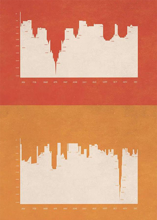 正負圖形的空間表現(xiàn)方式往往能夠帶給受眾切入點的錯位,以產生一種矛盾的空間,且圖形會隨著切入點的變化而不斷變化,原本離我們很近的焦點反而會不斷后退,從而產生一種遠近反轉的立體形態(tài)感。