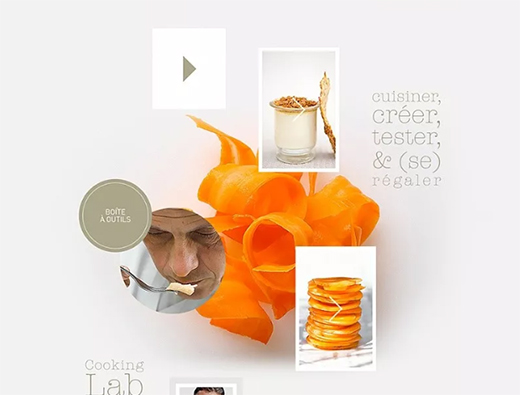 2.整體感增強(qiáng),不被干擾。設(shè)計(jì)師打破常規(guī)的布局,利用重疊的方式,將圖片文案和背景元素進(jìn)行結(jié)合,讓整個網(wǎng)頁每一個版塊之間既保持了一定的節(jié)奏感間隙,又避免了彼此不同的板塊之間元素過多而造成的干擾。