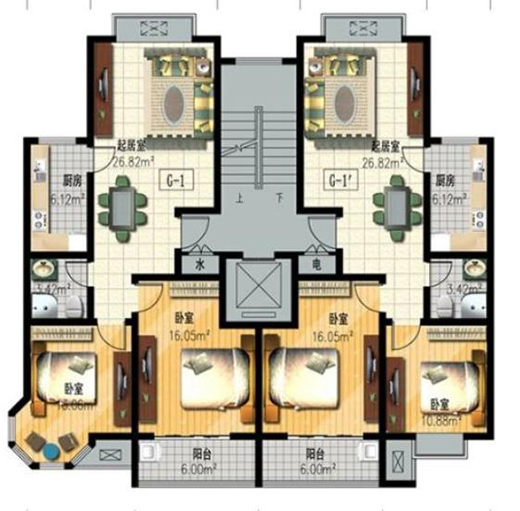在國家早期時(shí)候,樓層普遍在6層以下,一般不配建電梯,以樓梯為主,做一梯兩戶的設(shè)計(jì),公攤面積極少。從平面設(shè)計(jì)來看,這種房子的戶型其實(shí)也比較通透,得房率高。當(dāng)然這種設(shè)計(jì)最主要的問題在于,三樓以上的住戶,上下樓梯較累,特別對(duì)于老人家的日常生活極為不便,近年不少老小區(qū)都希望加裝電梯也是一般發(fā)生在這樓棟設(shè)計(jì)。