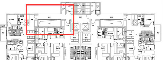 這種設(shè)計(jì)主要的問題在于,中間戶不算通透,端頭戶的采光又被中戶遮擋,優(yōu)勢(shì)在于公共空間浪費(fèi)的不多,在前幾年的房源設(shè)計(jì)中比較常見。