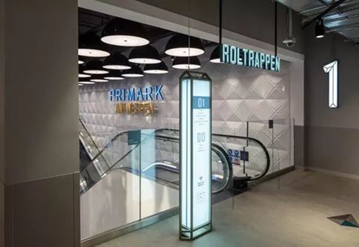 一樓通常是客人最先到達和人流量最為密集的區(qū)域,其標識系統(tǒng)對于人流的引導(dǎo)和疏通起到了至關(guān)重要的作用;停車場標識系統(tǒng)通常包括地面、地下兩部分,它解決的是人下車以后如何通往商場的問題。