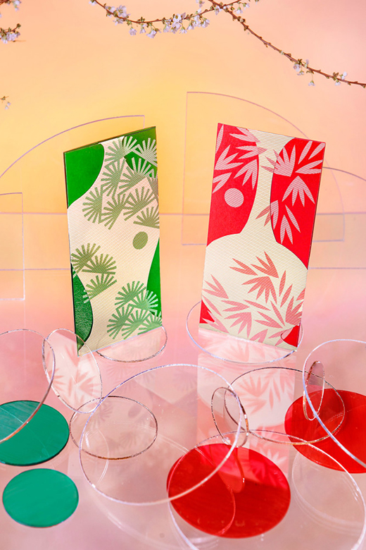 通常的動物吉祥物,我決定邀請人們關(guān)注和關(guān)注春天的本質(zhì)-自然。受民間繪畫的啟發(fā),以“TùngCúcTrúcMai”(松樹,雛菊,竹子和杏花)四棵繁茂的樹木為概念,以最小的象征性美學(xué)再現(xiàn),同時與新鮮多彩的色調(diào)配對(從調(diào)色板中汲取靈感)貨幣)。今年您家中熟悉的花瓶不再裝滿鮮花,而是“運(yùn)氣–金錢”,隨時可以交付給您所愛的人。