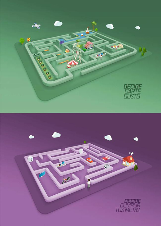 面的隱視,不同的面按虛實(shí)、大小、透視變化等形式排列可以形成空間的縱深感和層次感,造成視覺(jué)視幻。