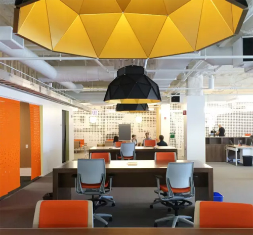 Discover金融公司在芝加哥郊區(qū)擁有面積闊綽的辦公總部,但考慮到員工便利和業(yè)務(wù)需要,他們首次啟用移動(dòng)衛(wèi)星站式的辦公方式在芝加哥市區(qū)開創(chuàng)了一個(gè)面積不大但功能全備的辦公空間,對(duì)于這樣一個(gè)前所未有的模式,如何管理員工的使用,配置怎樣的功能,如何引導(dǎo)人的行為,以及在有限的造價(jià)和時(shí)間內(nèi)完成這個(gè)具有挑戰(zhàn)性的任務(wù)成為聚焦的重點(diǎn)。對(duì)于一個(gè)連玻璃都被看做是奢侈品的項(xiàng)目,要如何去體現(xiàn)它的功能,它的美學(xué),它所承載的企業(yè)變革的使命,這對(duì)設(shè)計(jì)師來(lái)說(shuō)無(wú)疑是巨大的挑戰(zhàn)。借助科技的革新,創(chuàng)造空間的靈動(dòng)性,實(shí)現(xiàn)員工自助辦公,最終成功開創(chuàng)了企業(yè)新的辦公模式,使企業(yè)的運(yùn)營(yíng)和員工福利都得到了提升。
