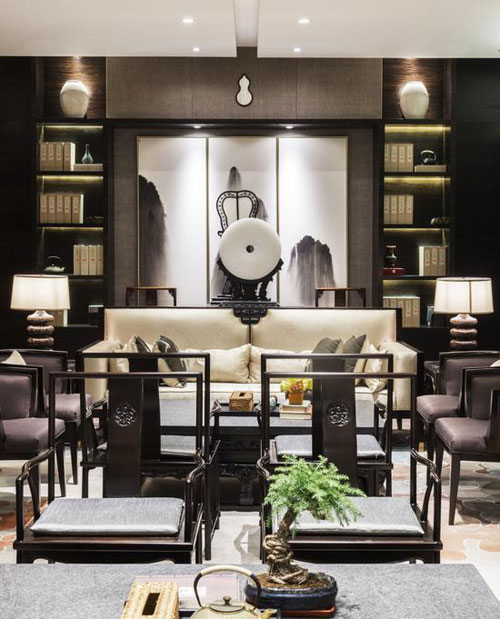 除去奢華的裝飾,特色的牆身及藝術(shù)擺設(shè)自然地表達(dá)出傳統(tǒng)文化中的精髓;天花滲出的燈光給空間室增添幾分暖意,精巧的傢俱,擺設(shè)和雅致的掛畫(huà),使整個(gè)空間在濃濃古韻中流露出幾許現(xiàn)代氣息。