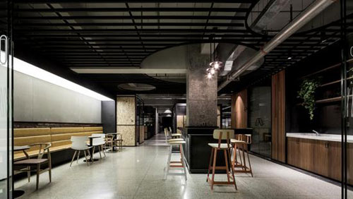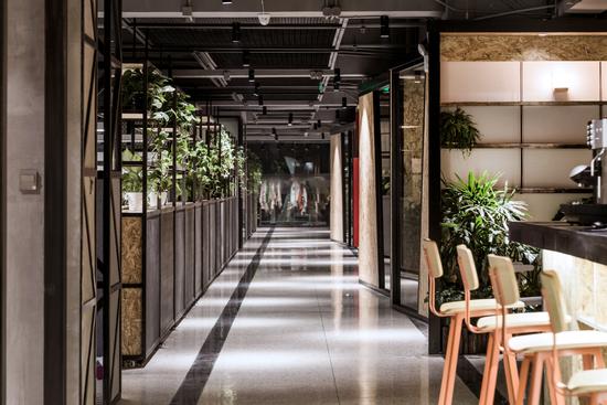 合理規(guī)劃動線,各部門之間協(xié)調工作的同時抑制干擾(如打樣車間比較嘈雜而設計部門相對需要安靜),功能性使用和游走時體驗的平衡,讓員工更有“愿意呆在這個地方”之感。突破傳統(tǒng)辦公空間的設計理念,用簡潔單純的語言表達,深色調的整體布局,工業(yè)風的空間營造,各個空間功能的靈活多變,都是體現(xiàn)了設計師的功力和整體把控力,也凸顯了作為一個時尚行業(yè)——服飾企業(yè)的辦公空間的時尚與新奇特。