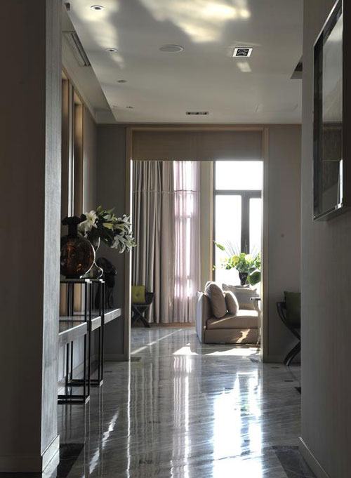 盡管人們已經(jīng)固執(zhí)地習(xí)慣于曲線表達的感性與柔和,感覺直線的理性總會缺少溫度。但是,當亞楠用這些橫平豎直“輕吟”出一個可以打動人的空間時,便不得不認可設(shè)計師審美認知的高度和功力的把控,同樣的素材在不同人的把控及表現(xiàn)下,一定會呈現(xiàn)不同的狀態(tài)。如柯布西耶所說:“尺度和比例的完美,如何在空間中去呈現(xiàn),是非常重要的”。