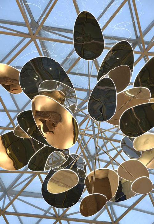 懸在中庭空間的不是豪華吊燈而是體量超大、空靈、斑斕的枝型藝術(shù)裝置物,這種「品味」可不是一般人能接受。設(shè)計(jì)師也明白這一點(diǎn),所以她沒(méi)忘記把一些視覺(jué)重點(diǎn)妝點(diǎn)得