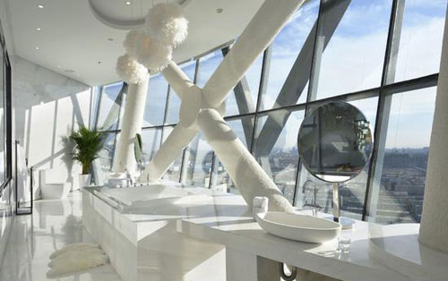 能夠在130米的高度,擁有一覽無(wú)余的360度的環(huán)形觀景視角。在晨曦的陽(yáng)光中躺在寬大的浴缸中沐浴冥想,在夕陽(yáng)的余暉中握卷凝思,遠(yuǎn)眺西山在日落時(shí)層疊的山巒和被霞光浸染的蒼茫山色。在弧形寬大的落地窗前,伴著絲竹聲吃著陽(yáng)光下的清粥小菜的早餐。在柔和的燈光下坐在舒適的沙發(fā)里,被直通天花板的書城環(huán)繞,與三五知己品酒論道......