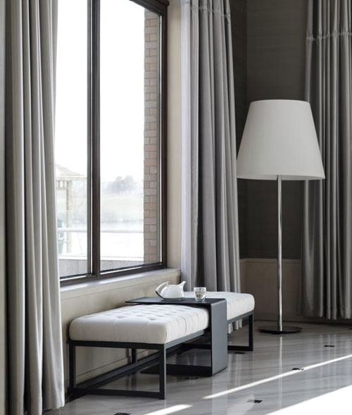 這樣的灰色,不以絢麗抓人眼球,亦不招搖引人關(guān)注,空間內(nèi)的每一樣家具,甚至配飾,都能各自呈現(xiàn)自己的美與價(jià)值,此處的灰色宛如透明,低調(diào)卻又強(qiáng)大。“大象無(wú)形”,色彩也一定有這樣的能量,在這種仿佛不存在的色彩中,人卻能感受到一種真正的放松,灰色過(guò)濾掉都市人喧囂的雜念,令人回歸到一種祥和的狀態(tài)中,讓人心無(wú)旁騖,尋求本真?;疑尸F(xiàn)出的這種讓人近乎接近透明的力量,正是設(shè)計(jì)師使用它的初衷——“用環(huán)境影響與觀照內(nèi)心。”