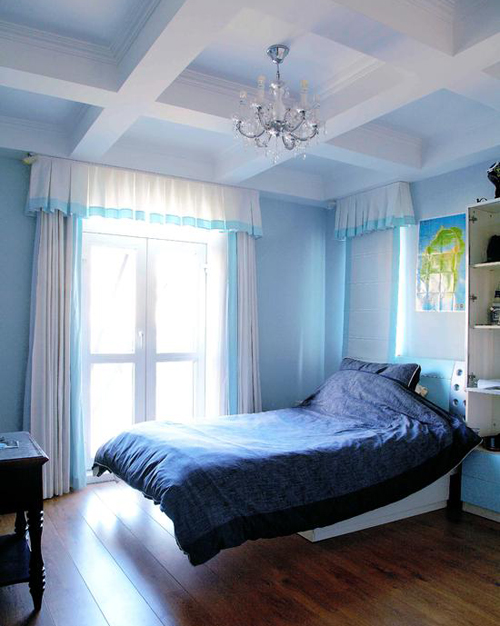 臥室以藍(lán)色為統(tǒng)調(diào),深深淺淺的藍(lán)色有著自然的清新,托斯卡納風(fēng)格的簡(jiǎn)樸與優(yōu)雅中充滿了生活的舒適與愜意。光從天上來,落了一地,又爬到了床上,生活需要這樣不多不少的溫暖氣息。