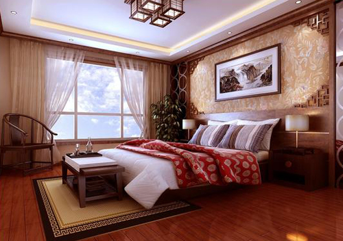 墻面上精致的鏤空雕花與山水畫將東方美學(xué)的詩意帶入了房間,薄紗質(zhì)地的落地窗簾使窗外的藍(lán)天白云更有清新之感,飄逸而浪漫。云淡風(fēng)輕的意境與詩畫韻味結(jié)合在一起,渾然天成。