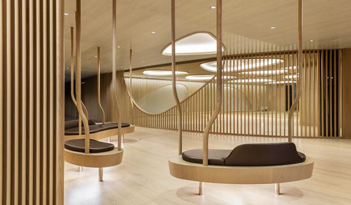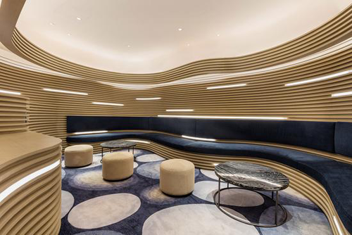 香港某處會館的設(shè)計中,何宗憲先生將服務(wù)臺安排在了待客區(qū)的后面,這樣一來,陽光可以更加充沛的落入大廳內(nèi)部,整個空間在寬闊中充滿著明亮與溫馨。以生活以舒適以健康為先的理念,無處不在。