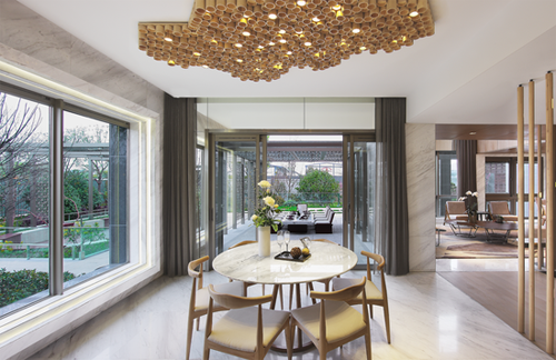 窗外的綠意是天然的園林景觀,并為空間帶來了更多的通透感。枝葉扶疏時,陽光細碎里,一步一景的住宅,是生活里最美好的存在。