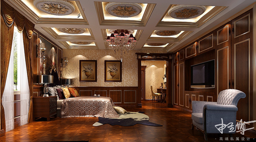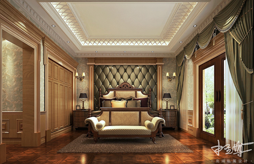 這種設(shè)計(jì)需要有歐式的雍容又有法式的浪漫唯美,畢竟業(yè)主的住宅不僅是滿足功能需求,更多的是閑暇時(shí)光有個(gè)心靈的棲息港灣和后安適生活的居所。臥室灰藍(lán)色布藝搭配香檳金床頭柜、燈具及掛畫,使空間輕松愉悅且不失尊貴優(yōu)雅。