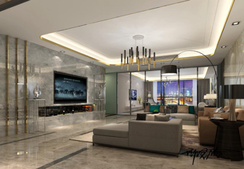 客廳以大理石為主,大理石提升了背景墻的整體檔次。明亮而時尚的配色讓人眼前一亮,大面積的大理石與明快的金屬線條,顯現(xiàn)出大氣而經典的質感。沒有太多的造型和約束,加上原木茶幾、棉麻質感的布藝沙發(fā),讓客廳空間顯得溫暖安逸。有時候一家人可以圍坐在這里看電視,一家人其樂融融。
