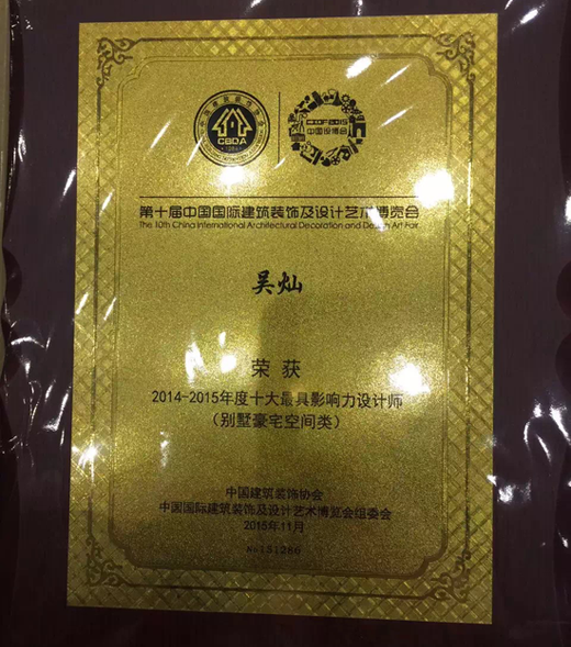 在近些年,吳燦也開始在國內的大型設計師比賽中屢創(chuàng)佳績: